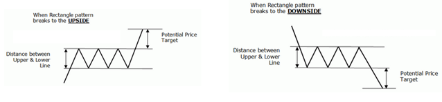 Look durations work best for this pattern. The potential price target is usually considered to be the same height as that of the rectangle. A pattern over 3 weeks is a good indication. A 3 month duration is expected to meet the breakout potential (height of the rectangle) while a 6 month pattern can exceed the breakout target.