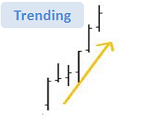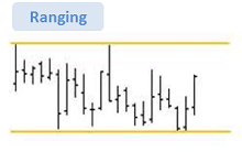 The sideways trend is also known as a trendless, ranging or flat market. Though similar to the other two types, the sideways trend shows no major difference in the price values between the beginning and the end of a specific time period. The sideways trend denotes market conditions in which prices may be moving back and forth between levels of support and resistance (covered next).